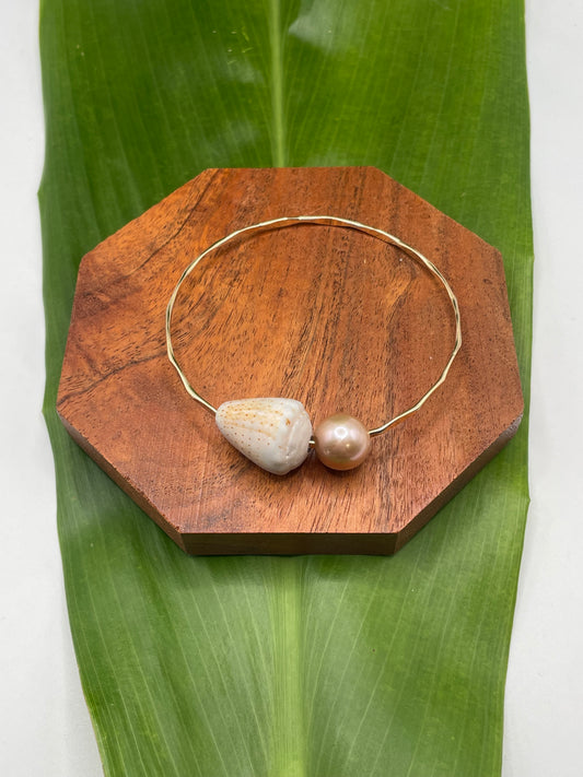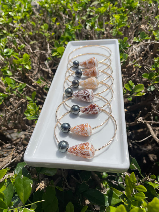 7.5" Hawaiian Cone Shell Bangle Sterling Silver