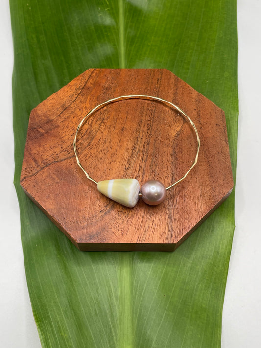 7.5" Olive-Green Cone Shell Bangle Gold Filled