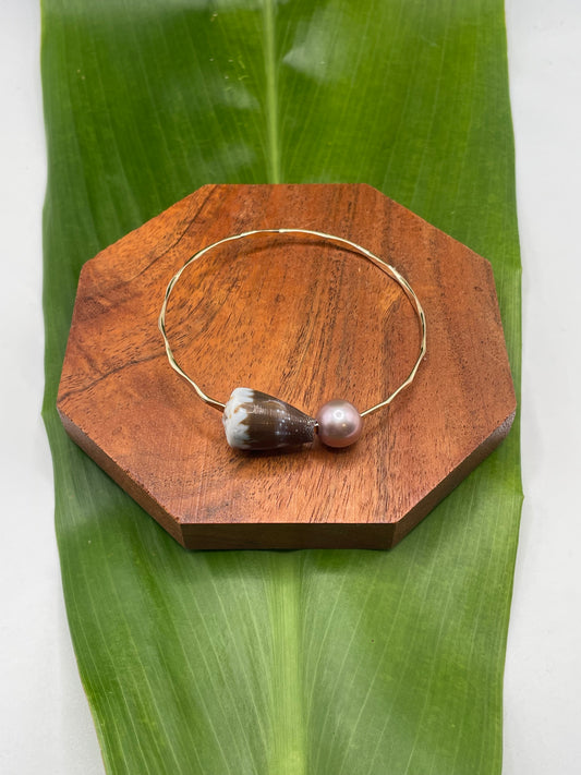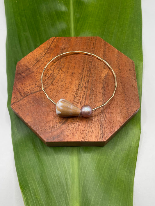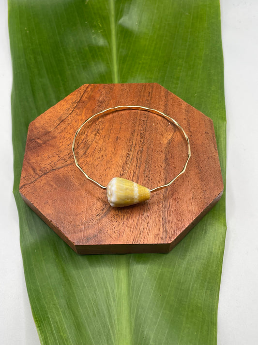 7.5" Olive-Green Cone Shell Bangle Gold Filled