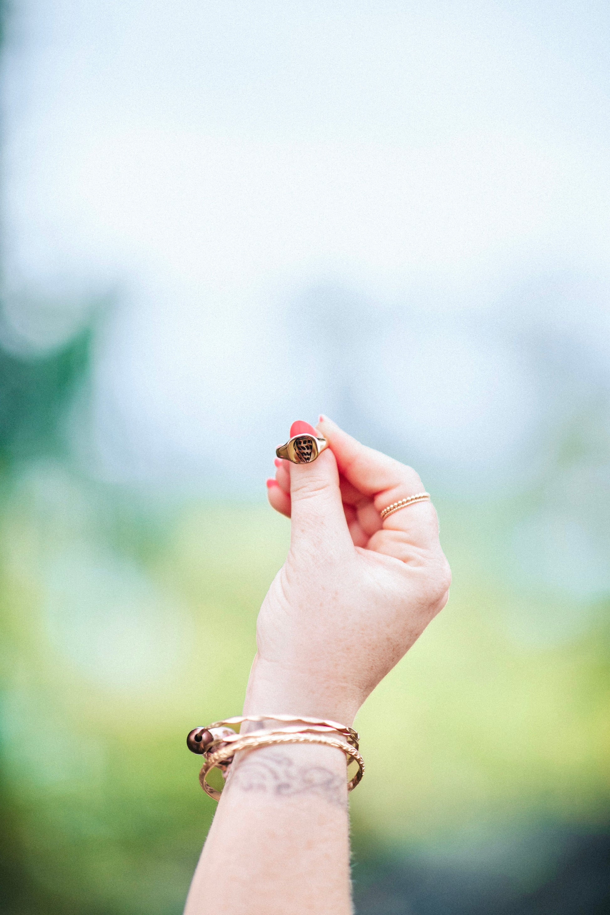 One-of-a-kind, 14k gold filled hand engraved shell ring.