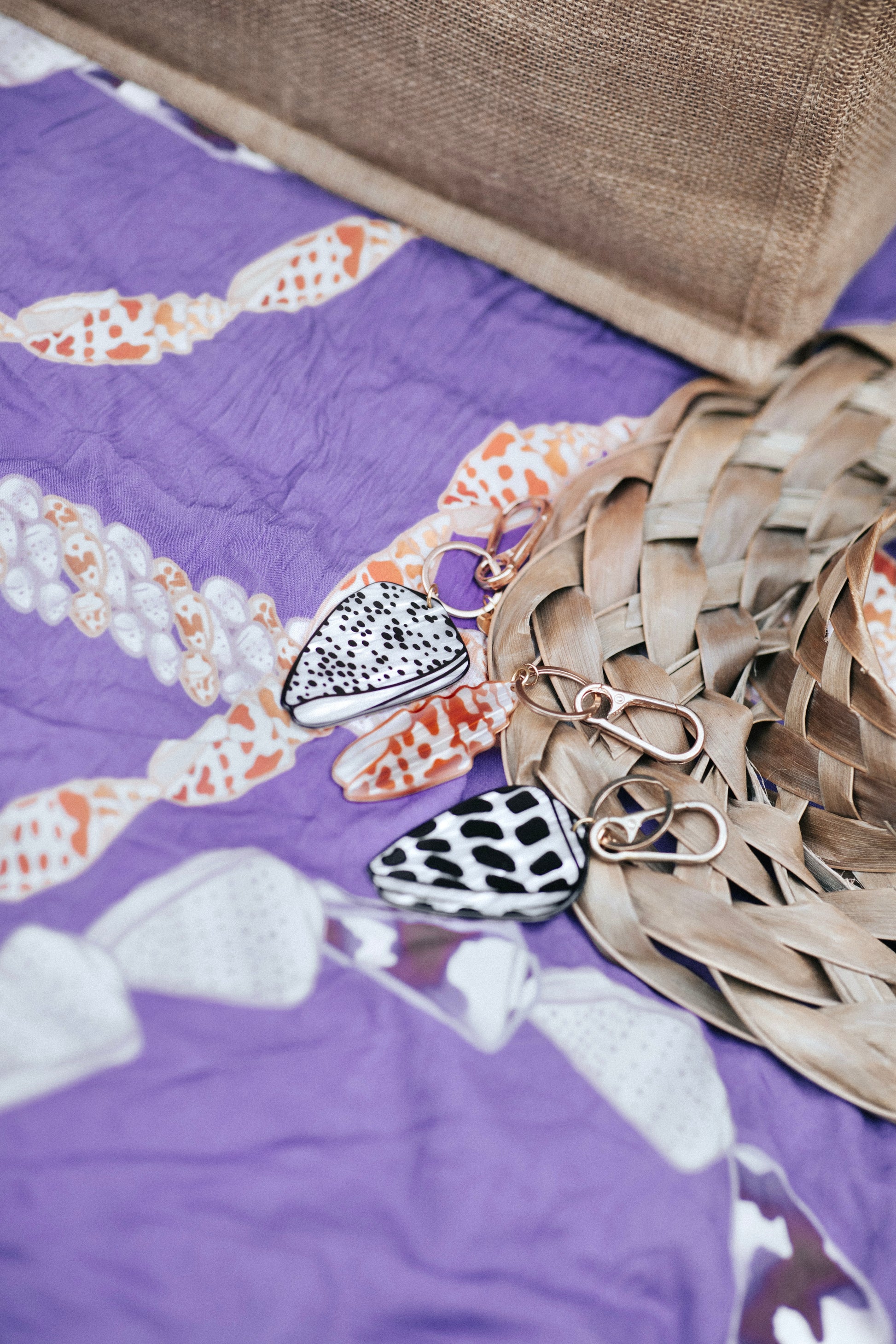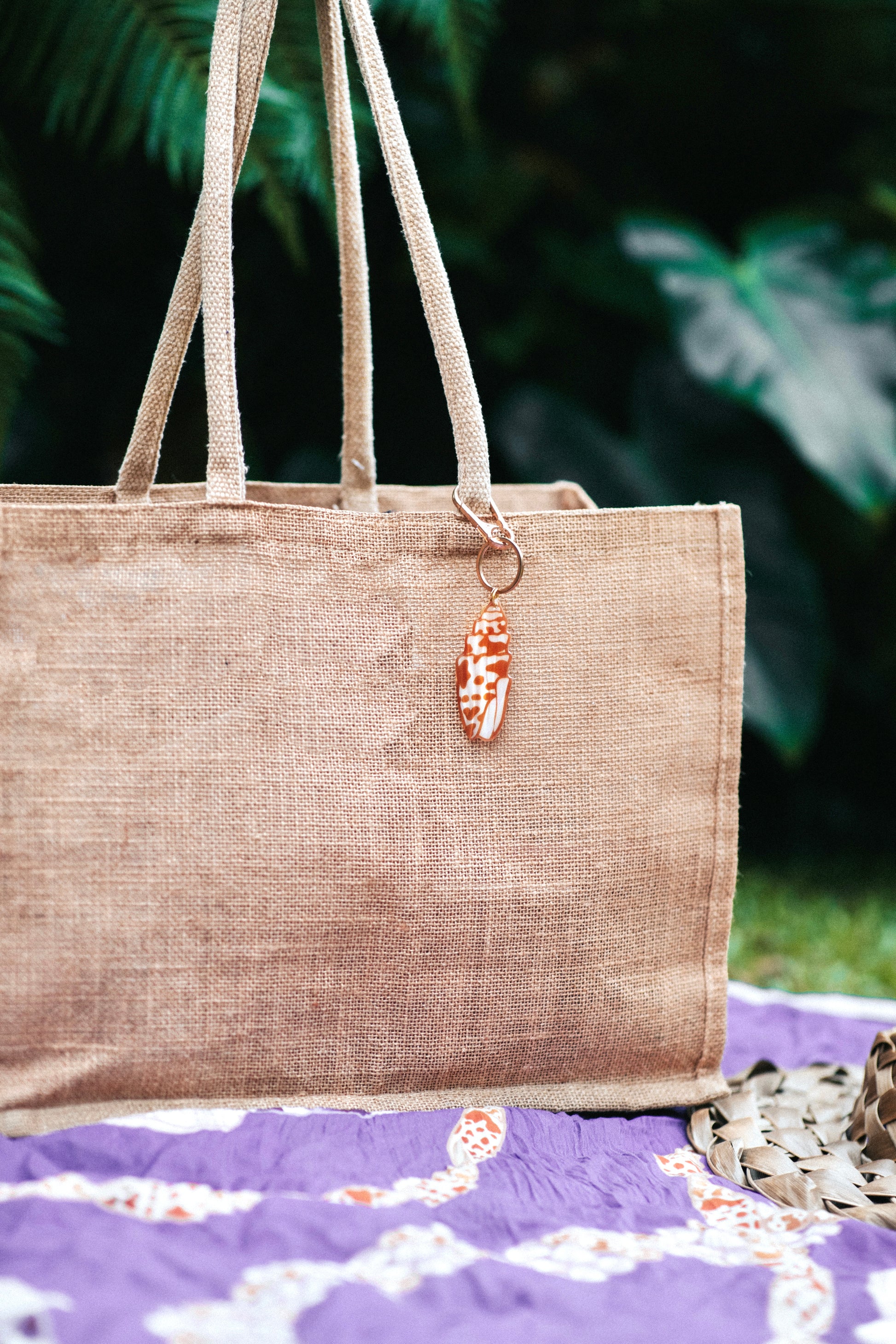 Island-style charms for purses, backpacks, keys + more. Made from durable, plant-based cellulose acetate with gold-plated hardware.